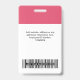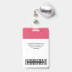 Dieses Abzeichen mit Foto, Scan-Bar und Firmenlogo wird leicht auf das lebhafte Fuchsia-Himbeerrosa benutzerdefinierter Firmenname abgestimmt. Ein einfaches Business-Design in niedlichen fuchsienrosa und weißen Standardfarben, vollständig anpassbar in Vorder- und Rücken-Größen, serifenlose, einfache und moderne Schriftart und ein berufliches und klares Aussehen. Erhältlich mit Lanyard, Metallklammer oder mit Retraktikett. Keine Mindestbestellung.