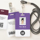 Dieses Lila Abzeichen mit dem Namen des Mitarbeiters kann einfach mit Foto, Bar scannen und dem Firmenlogo personalisiert werden. Ein einfaches Business-Design in dunklen, lila und weißen Standardfarben, das in Vorder- und Rückengrößen vollständig anpassbar ist, serifenlose, einfache und moderne Schriftart und ein berufliches und klares Aussehen. Erhältlich mit Lanyard, Metallklammer oder mit Retraktikett. Keine Mindestbestellung.