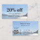 Weißer Hintergrund, schwarzer Text. Auf der Vorderseite: Fügen Sie Ihren Rabatt hinzu. Zurück: Personalisieren Sie Ihren Firmennamen, Ihre Telefonnummer, Ihre E-Mail, Ihre Website-Adresse, Ihren qr-Code auf Ihrer Website oder Ihrem Social-Media-Konto. Fügen Sie Ihr eigenes Foto hinzu. Auf beiden Seiten befindet sich ein weißes Overlay über dem Foto, sodass Sie den Text besser lesen können. Sie können diese löschen, wenn Sie ein neutrales Foto haben.
