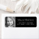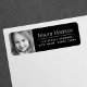 Moderne, schwarze Rücksendeadressen-Aufkleber mit Ihren benutzerdefinierten Foto- und Vorlagenfeldern für Name und Adresse. Name oder Familienname in einem minimalen, serifenlosen Schriftart. Stellen Sie sicher, dass das Foto die Blutfläche abdeckt, wenn Sie kein quadratisches Foto verwenden.