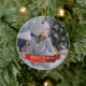 Custom Foto Red Ribbon Weihnachtsferien Keepake Keramik Ornament. Fröhlicher Weihnachtstext ist auf einem festlichen roten Band mit kleinen weißen Sternen. Wechseln Sie das Foto mit Ihrem Foto. Schaffen Sie sich Ihr eigenes Weihnachtsgeschmack.