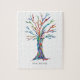 Dieses stilvolle Puzzle ist mit einem niederbogenfarbenen Mosaikbaum geschmückt. Passen Sie es mit einem Namen oder einem inspirierenden Zitat an. Original Mosaik © Michele Davies.