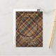 Einzigartige, rustikale, niedliche und dekorative Urlaubssaison Grußkarte. Mit klassischem Happy Thanksgiving-Wunsch auf einem gemütlichen warmen, farbenfrohen aquamarin blauen und orangefarbenen karierten Tartan-Muster. Mit Zimmer, um sich anzupassen oder personalisieren mit Ihrem eigenen fröhlichen Foto und Familiennamen auf der Vorderseite der Karte, und eine anpassbare Saison Gruß Gedicht auf der Rückseite der Karte mit Raum für Familiennamen.