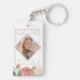 Einzigartiger und trendiger Foto-Schlüsselanhänger mit einem zartem, zartem, violett-rosa Blumenrahmen und moderner Typografie. Mit Raum zum Anpassen oder Personalisieren mit einem Foto, und Klasse Abschluss Jahr. Spaß Sake Geschenk, leicht anpassbar mit einem Foto Ihrer Wahl.