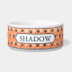 Diese Schüssel zeigt ein Haustierpfotenmuster mit einem benutzerdefinierten Namen des Haustieres.