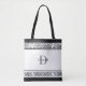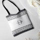 Erweitern Sie Ihren Alltag mit dieser individuell anpassbaren Schwarz-Weiß-Tasche, die oben und unten mit einem ausgeklügelten griechischen Schlüsselranddesign ausgestattet ist. Diese Tasche, die mit einem eleganten Monogramm-Initial und personalisierten Namen in der Schrift hervorgehoben wurde, ist die perfekte Mischung aus modernem Stil und Funktionalität. Ideal für den täglichen Bedarf, ist es eine trendige Geschenkidee für Brautmädchen, Lehrer oder als nachdenklicher Muttertag oder Hochzeitsgeschenk. Das schlichte und dennoch stilvolle Design macht es vielseitig für jeden Anlass, von lässigen Ausflügen über Brautparty-Veranstaltungen bis hin zu Schulvorbereitungen.