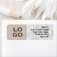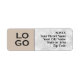 Diese beruflichen kundenspezifischen Rücksendeadressen-Aufkleber verfügen über ein Firmenlogo oder ein Firmenlogo auf den links, mit Adresse und Lage rechts. Der Hintergrund ist in einem weichen Beige unter dem Logo gehalten, der weiße Marmor mit silbernen Adern rechts.