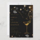 Elegante und stilvolle Einladungskarte für eine Cocktail-Party. Mit einem anspruchsvollen schwarzen Hintergrund mit schimmernden goldenen Akzenten, funkelnden Sternen und einer klassichen Cocktailglas-Illustration, perfekt für hochklassige Unternehmens- oder gesellschaftliche Veranstaltungen.