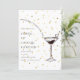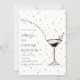 Elegante und neuartige Einladungskarte für eine Cocktail-Party. Das Design zeigt eine elegante Martini-Glas-Illustration mit schimmernden goldenen Glitter-Akzente auf einem sauberen weißen Hintergrund, perfekt für hochklassige Veranstaltungen und Feiern.