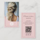 Erstellen Sie eine berufliche und moderne Visitenkarte mit einem benutzerdefinierten Foto auf der Vorderseite und Ihrem Logo, sowie einen scannbaren QR-Code auf der Rückseite, um das Netzwerk zu erleichtern, und editierbare Social Media Icons. Ideal für Haarstylisten, Make-up Künstler, Beauty Salon und Unternehmen, die eine durchdachte und berufliche Präsentation anbieten möchten!