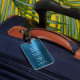 Benutzerdefiniertes Logo Mit Monogramm blaue Imitate Brushed Metal Gepäckmarke. Personalisieren Sie es mit Ihren Daten und Ihrem Firmenlogo.