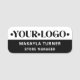 Dieses stilvolle schwarze und weiße Logo Mitarbeiter Magnet Namensschild ist leicht anpassbar mit Ihrem Logo, Namen und Jobtitel.