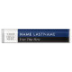 Passen Sie diese moderne Schreibnamenplatte mit weißem Namen und Nachnamen auf einem marineblauen Streifen auf der oberen Hälfte an und mit weißem Titeltext auf der schwarzen unteren Hälfte. Die Farben sind individuell anpassbar und können an Ihr geschäftliches Farbschema angepasst werden. Ersetzen Sie das Bild 'Ihr Logo hier' durch Ihr Logo. Für eine größere Anzahl von Namen Teller oder andere Anfragen können Sie den Designer kontaktieren.