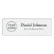 Personalisierte Namensschilder mit eigenem Logo, in dem Ihr Name und Titel auf weißem Hintergrund schwarz gedruckt sind.