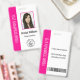 Verleihen Sie Ihrer Unternehmensidentität mit diesem schicken rosa Rahmen für professionelle Mitarbeiter-ID-Ausweise einen Hauch von modernem Flair, perfekt für kreative Agenturen, Boutiquen und vorausschauende Unternehmen. Dieser auffällige Ausweis verfügt über ein sauberes, minimalistisches Layout mit einem kräftigen rosa vertikalen Akzent und einem passenden Fotrahmen, der die Porträts Ihrer Mitarbeiter hervorhebt. Der Entwurf ist praktisch konzipiert: Die Rückseite enthält einen scannbaren Barcode und klare Rückgabeanweisungen für den Fall, dass der Ausweis gefunden wird, und bietet somit eine sichere und professionelle Lösung für die täglichen Identifikationsanforderungen Ihres Teams.