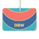 Sie können den gelben Text für das Monogramm personalisieren. Die hintere Streifen sind gebogen. Die Streifen verlaufen quer (horizontal). Die Streifen sind rot, gelb, cyan und tiefblau.