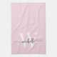 Girly Modern Elegant Blush Pink Monogram Initial Name Signature Script Custom Personalisiert Kitchen Handtuch. Dieses Design mit Ihrem Vornamen in einem hübschen handgeschriebenen Stil Swash Schwanz Schriftart Typografie (oder Kalligrafie) mit Monogramm Erstmaligkeit in weiß und schwarz auf rot rosa Hintergrund. Diese sind einfach zu anpassen. Große stilvolle feminine Hauswärmeschenke, Muttertag, auch zum Geburtstag, Hochzeit, Brautparty und Es ist für das Mädchen, das Lieben einzigartige saubere minimalistische Dinge.