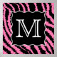 Dieses Schwarz-Weiß-Monogramm-Briefdesign hat einen eigenen Text für Ihre erste Buchstabenauswahl, auf einem fett-stylischen Zebramuster in Schwarz und Rosa. Ein trendig aussehendes mit Monogramm Tierdesign.