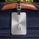 Dieses Gepäckanhänger hat einen silbernen Hintergrund von Imitaten. Am unteren Rand können Sie Ihre Taschenmarke mit Ihrem Monogramm/Initial und Namen personalisieren. Metal Look ist ein künstlerisches Rendering. Das ist kein Folienprodukt.
