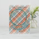 Einzigartige, klassische, niedliche und dekorative Grußkarte für die Urlaubssaison. Mit viel Spaß wünsche ich Ihnen ein gemütliches, farbenfrohes, aquamarin blaues und orangefarbenes kariertes Tartan-Muster. Mit Raum, um sich anzupassen oder personalisieren mit Ihrem eigenen fröhlichen Foto und Familiennamen auf der Vorderseite der Karte, und eine anpassbare Saison Grußgedicht auf der Rückseite der Karte mit der Option für Familiennamen.