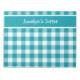 Ein benutzerdefinierbares Notepad oder Jotter mit einem Gingham-Muster aus aquamarinem und weißem Karo. Dieses Format passt sich gut an die Größe an und passt sich auch dem kleineren Notizblock an.