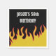 Werfen Sie einen rockigen Geburtstagsbash mit personalisierten Party-Vorräten wie diesen Papierservietten, die Flammen in gelben und roten Set auf schwarzem Hintergrund illustrieren. Ihre persönliche Nachricht wird in weißen, schweren Metallbuchstaben geschrieben.