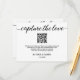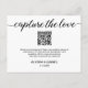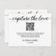 Die "Custom QR Code Wedding Foto Sharing Card" ist eine personalisierte und bequeme Möglichkeit, um die Gäste zu ermutigen, ihre Fotos von einem besonderen Tag an zu teilen. Diese Karte enthält einen benutzerdefinierten QR-Code, den Sie scannen können, um auf Ihre Hochzeitsplattform für Fotos zuzugreifen. Passen Sie alle Details an, um diese Karte einzigartig zu machen. Einfaches, schwarz-weißes Design, das Sie mit einer Nachricht neben dem QR-Code personalisieren können. Der individuelle QR-Code macht es den Gästen einfach, ihre Fotos zu teilen, um so jeden wertvollen Moment aus Ihrer Feier zu erfassen. Dieses Foto-Sharing-Card eignet sich hervorragend zur Verbesserung Ihres Hochzeitserlebnisses und zur Aufnahme von Erinnerungen. Es verbindet Stil und Funktionalität nahtlos miteinander. Machen Sie eine Aussage mit dieser einzigartig gestalteten Karte, die eine Touch der Bequemlichkeit zu Ihrem Hochzeitsspiel Foto Sharing Bemühungen.