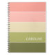 Stilvoll und elegant zeitgenössisch klassische Feder frisches Grün, Pastellrot Rosa und Korallenrot Streifen Muster Design. Mit Raum, um mit dem Namen Ihrer Wahl. Schönes, originelles und cooles Cover für den Trend-versierten und kunstliebenden angesagten Trendsetter, trendige Optik-Liebhaber.
