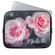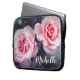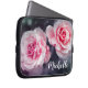 Laptop-Ärmel mit rosa Rosendesign auf dunklem Hintergrund.