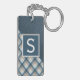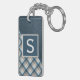 Moderne Bräune, Braun, Beige, Taupe und dunkelblau aquamarine Tartan kariert, und ein Imitat Leder Textur Hintergrund. Mit Raum zu personalisieren oder mit einem Namen Monogramm oder Initial Ihrer Wahl. Schöner, moderner und cooler Schlüsselanhänger- oder Kofferraumtag für den Trend-erfahrenen und kunstliebenden angesagten Trendsetter, künstlerischer Motif-Liebhaber.