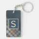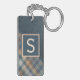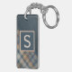 Moderne Bräune, Braun, Beige, Taupe und dunkelblauer Tartan kariert, und ein Imitat Leder Textur Hintergrund. Mit Raum zu personalisieren oder mit einem Namen Monogramm oder Initial Ihrer Wahl. Schöner, moderner und cooler Schlüsselanhänger- oder Kofferraumtag für den Trend-erfahrenen und kunstliebenden angesagten Trendsetter, künstlerischer Motif-Liebhaber.