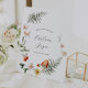Eigene Unterschrift für Ihre Babydusche mit einem Kranz aus Grünpflanzen, Waldpilzen und Wildblumen. Fügen Sie Ihren Text mit den angegebenen Feldern hinzu.