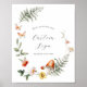 Eigene Unterschrift für Ihre Babydusche mit einem Kranz aus Grünpflanzen, Waldpilzen und Wildblumen. Fügen Sie Ihren Text mit den angegebenen Feldern hinzu.
