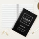 Fügen Sie Ihrem Arbeitsbereich einen beruflichen Look hinzu mit einem speziell für Ihr Firmenlogo geeigneten Spiralnotebook, das einen großen Platz für Ihr Firmenlogo mit modernem, individuellem Text bietet, der mit dem Namen des Mitarbeiters oder Geschäftsinhabers, dem Firmennamen, dem Standort, dem Slogan, der Website oder anderen Informationen personalisiert werden kann. Ein großartiges Geschenk für Unternehmen. Beachten Sie, dass das schwarze und weiße Farbschema geändert werden kann.