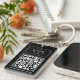 Modernes und minimales Design von Schlüsselanhängern mit Firmenlogo, individueller QR-Code und benutzerdefinierter Website oder anderer personalisierter Informationstext. Die Farben Schwarz und Weiß können geändert werden. Macht ein großartiges Werbegeschenk für Kunden!