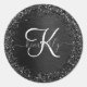 Dieses trendige, elegante, runde Aufkleber-Design mit hübschem schwarzglänzenden Glitzer auf schwarz gebürstetem metallischem Hintergrund ist einfach zu personalisieren.