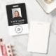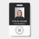 Benutzerdefiniertes Blue Employee Foto Name Abzeichen mit Logo & Bar Code Einfache Personalisierung dieses Abzeichen mit Ihrem Foto, Bar scannen und Firmenlogo. Mit einem beruflichen und sauberen Design in lebhaftem Blau und Weiß, ist es sowohl vorne als auch hinten vollständig anpassbar. Mit modernen, serifenlosen Schriftart für einen beruflichen und klaren Look. Erhältlich mit Lanyard, Metallklammer oder Retraktikhalterung. Perfekt für Unternehmen jeder Größe - keine Mindestbestellung erforderlich.