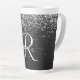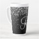 Dieses elegante, latte Tasse-Design mit hübsch silberfarbenem Glitzer auf schwarz gebürstetem metallischem Hintergrund ist einfach zu personalisieren.