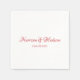 Personalisiertes Skript benutzerdefinierte Coupname und Datum Hochzeitspapier Napkins. Elegantes, klassisches, minimalistisches Design. Rot und Weiß.