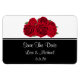 Der Save the Date angepasste flexible Magnet wird mit rote Rosen gedruckt. Passen Sie dieses Element an, und ändern Sie die Beispielnamen und das Datum mit dieser Vorlage auf das Ihre.