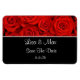 Der Save the Date angepasste flexible Magnet wird mit einem Foto aus rote Rosen angezeigt. Passen Sie dieses Element an, und ändern Sie die Beispielnamen und das Datum mit dieser Vorlage auf das Ihre. Bild