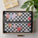 Dieses hübsche, individuell anpassbare Papiertaschentuch ist mit einem Alice im Wunderland-Design mit einem schwarzen Standardrahmen und einem klassischen Schwarz-Weiß-Schachbrettmuster ausgestattet. In der Mitte trägt die junge Alice ein langes Kleid und hält ein kleines weißes Kaninchen. Alice ist von surrealen Tee-Party-Artikeln umgeben, mit Teebechern, Teekanne, Herz, Pilz, verrücktem Hut, Taschenuhr und einer Vielzahl von fliegenden Spielkarten. Die Standard-Hintergrundfarbe ist weiß, drücken Sie auf die Schaltfläche Anpassen, um die Farbe oder den Rahmen zu ändern, wenn Sie möchten. Ein großartiges Geschenk oder eine Dekoration für Liebhaber von kontrollierten und Schachbrettmuster, Alice im Wunderland, das Weiße Rabbit, klassische Literatur und geheimnisvolle Märchendesigns. Dieses Design ist auch auf Geschenktaschen, Aufklebern und anderen Artikeln erhältlich.