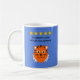 5-Sterne-Bewertung und Ihre Texterfassung. Oder verwenden Sie den Standard "Excellent Onkel. Ich empfehle Ihnen". Das Design hat ein lächelndes Tigergesicht, um dem Spaß beizutragen - oder man kann es ändern, indem man stattdessen sein eigenes Foto hochlädt. Das gleiche Design und der gleiche Text auf der Vorder- und Rückseite der Tasse mit einem hellblauen Hintergrund.
