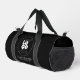 Benutzerdefiniertes weißes Firmenlogo auf der schwarzen Duffel-Tasche - Laden Sie einfach Ihre weiße oder helle Logo-Grafik oder Ihr Image für ein Unternehmen mit zwei Zeilen personalisierten Textes in diese Vorlage hoch.