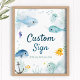 Maßgeschneidertes Schild mit Unterwasser-Illustrationen, Meeresthema für eine Babydusche oder Geburtstagsfeier. Dieses Schild ist perfekt für eine nautische Babydusche. Mit Aquarell-Meerestieren, Walen, einem Babyoktopus, nautischen Elementen und Algen ist dieses Schild ideal für eine delikate Dekoration des Party mit einem Meeresmotiv. Der gesamte Text ist bearbeitbar, sodass Sie den Text nach Belieben ändern können.