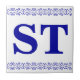 Viktorianisch Letter Tile - Blau auf Weiß mit einem Druckerrand. Schilder aus Kacheln machen. Zwei Buchstaben.