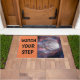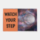 Diese lustige Begrüßungsmatte warnt die Gäste davor, in das schwarze Loch zu fallen.