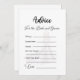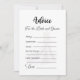Die Einführung von "Advice For the Bride and Groom" ist ein zartes und sentimental Brautparty-Spiel, das für das glückliche Paar einen wertvollen Sake schaffen soll. Dieses Spiel bietet mehr als nur eine Quelle der Unterhaltung und bietet Familien, Freunden und Angehörigen einen intimen Rahmen, um ihren herzlichen Rat auf sichere und konfrontative Weise anzubieten. Während Braut und Bräutigam ihre Reise der Liebe und Zusammengehörigkeit antreten, ermöglicht dieses Spiel ihnen, diese wertvollen Botschaften zu sammeln, sie über die Jahre zu lesen und wiederzuerlangen, was sie zu einem wertvollen Teil ihrer Liebe macht. Jede Karte enthält den eleganten Satz "Ratschläge für Braut und Bräutigam" in einem hübschen Schriftart mit schwarzer Schrift, der jedem Brautparty, Polterabend oder Hochzeitsfeiern eine Touch der Eleganz verleiht. Der Hintergrund ist weiß und symbolisiert die Reinheit der Liebe und die leere Leinwand, auf der ihre Reise beginnt. Ein anmutiges Hochzeitskleid schmückt die Karte und dient als Erinnerung des wunderschönen Engagements, das das Ehepaar gleich machen wird. Unter den Überschriften "Immer", "Manchmal", "Niemals", "Nicht vergessen" und "Ich wünsche euch beide" sind die Gäste eingeladen, ihren Rat einzutragen, dem Paar Weisheit und beste Wünsche zu vermitteln. Die Karten gipfeln mit dem Wort "Liebe" am unteren Ende, wo die Gäste ihre Namen unterschreiben können, was jede Karte zu einem herzlichen Zeichen von Zuneigung und Unterstützung macht. Ob professionell gedruckt oder gedruckt auf der Zuhause, "Ratschläge für Braut und Bräuche" wird zu einem unschätzbaren Sake, der das Wesen der Liebe und die wahren Wohlwünsche der nächsten zum Ehepaar einnimmt. Im Laufe der Jahre werden diese herzlichen Botschaften als wertvolle Erinnerung der unbeirrbaren Liebe und Unterstützung dienen, die das Ehepaar an seinem Hochzeitstag umgibt. Mit dem "Advice For the Bride and Groom" können Sie während des Brautparty oder der Hochzeit einen intimen und berührenden Moment schaffen, der es den Lieben ermöglicht, ihren herzlichen Rat und ihre Segnungen für das Paar auszudrücken. Dieses Spiel fördert ein Gefühl der Zusammengehörigkeit und dient als Beleg für die anhaltende Liebe, die das Paar und seine Lieben verbindet. Machen Sie die Hochzeitsfeiern mit "Ratschlag für die Braut und den Bräutigam" wirklich besonders und bedeutsam.