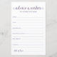 Diese einfachen, lila und weißen, modernen, minimalistischen, handgeschriebenen Skriptblätter sind perfekt, um Brautparty-, Probe- oder Hochzeitsgäste für das glückliche Paar auszufüllen. Die Menschen werden die Liebe haben, die Anweisungen zu bekommen - sie machen es so einfach, liebende Ratschläge und gute Wünsche verlassen. Sie werden noch auf Jahre geschätzt.
