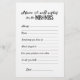 Eine moderne und minimalistische Advice and Well Wishings Karte in Schwarz und Weiß. Verlass deine Botschaft und Ratschläge für Braut und Bräutigam mit diesen süßen Karten. Sie passen zu unserem Sortiment an Hochzeitsspielen und Brautparty-Spielen, sodass Sie eine schöne koordinierte Veranstaltung erstellen können! Dies ist eine angenehme Aktivität für ein Brautparty, eine Verlobungsfeier, einen Junggeselinnen-Abschied oder einen Hochzeitsempfang.
